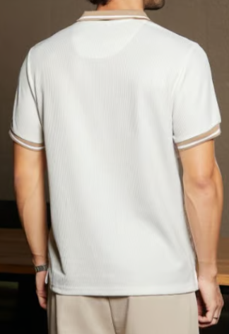 Elevate your wardrobe with our men’s white polo shirt, designed for both comfort and style. Featuring elegant beige trim on the collar and sleeves, this versatile shirt effortlessly blends casual and refined looks, making it perfect for everything from weekend outings to relaxed business meetings. Made from premium, breathable fabric, it ensures all-day comfort. Available in a range of sizes to guarantee the perfect fit. Make a statement with this classic and timeless addition to your collection.